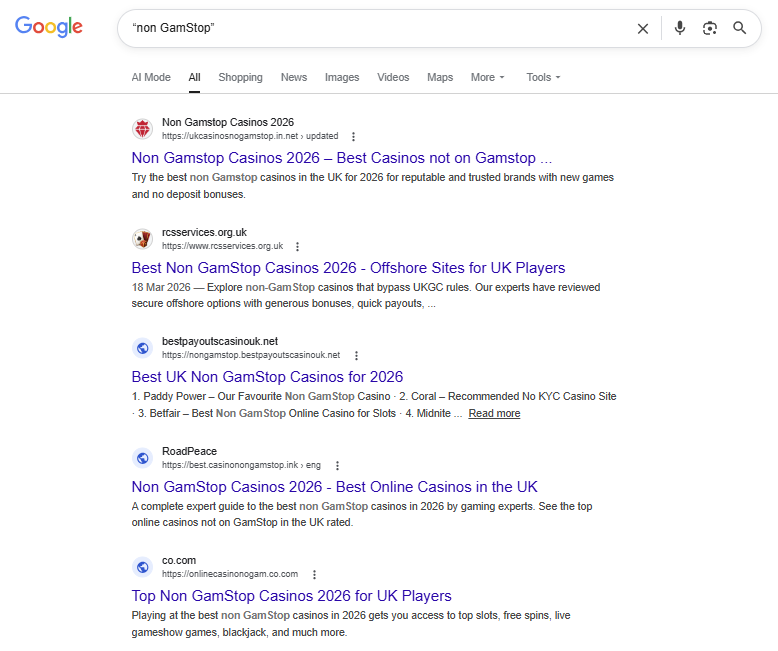 Data point: Search engines can return hundreds, if not thousands, of results for terms such as “non-GamStop casinos”, actively directing customers toward unlicensed operators that operate outside UK regulation and offer no safeguards, no meaningful protections, and no accountability.